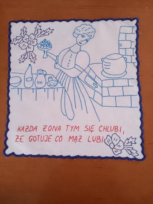 Serweta ręcznie haftowana na lnie o wymiarze 70x70 cm ,wykończona ręcznie robioną mereżką, haft kaszubski-wysyłka na ...