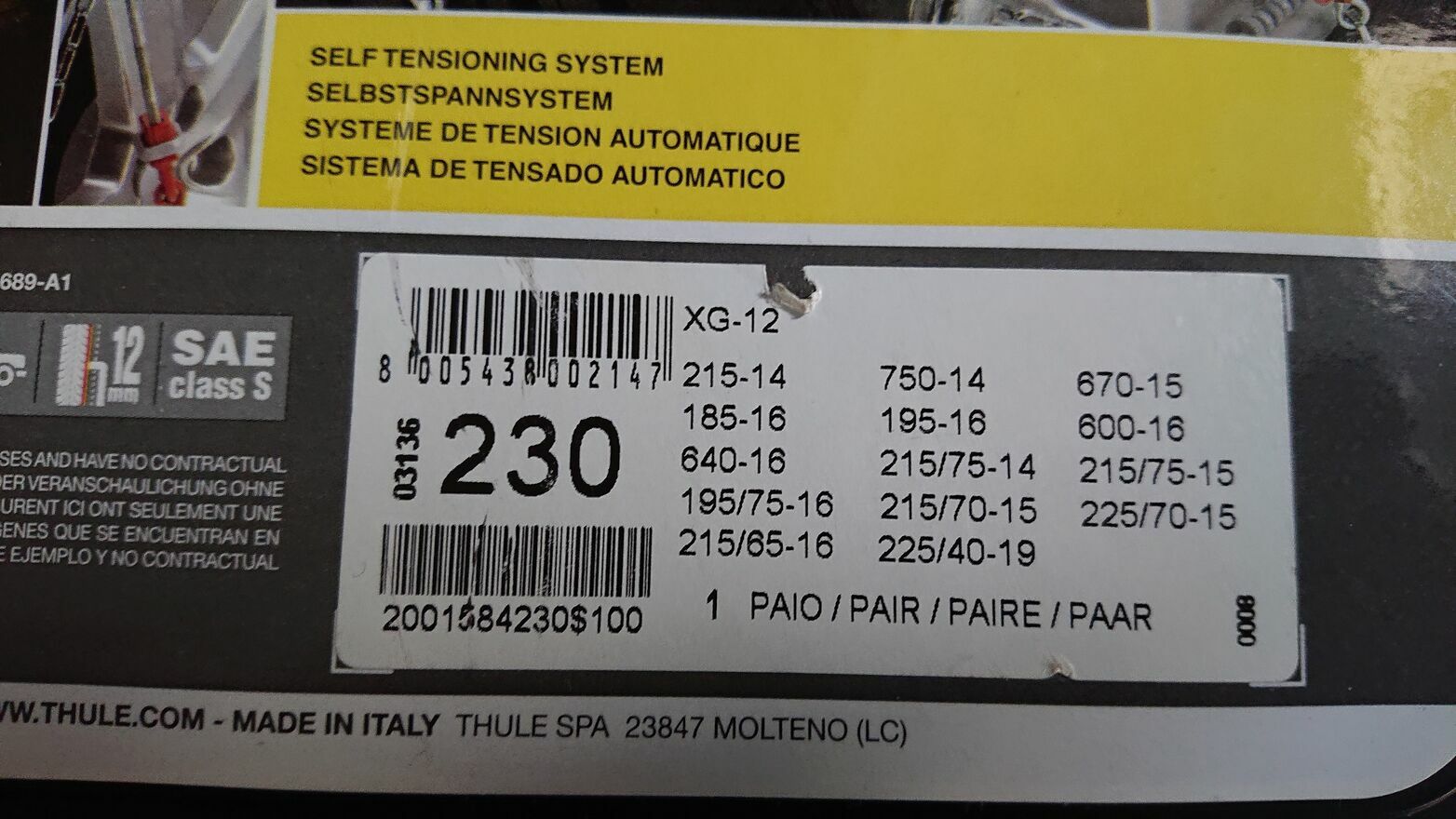 Łańcuchy na koła THULE XG-12 Made In Italia 230