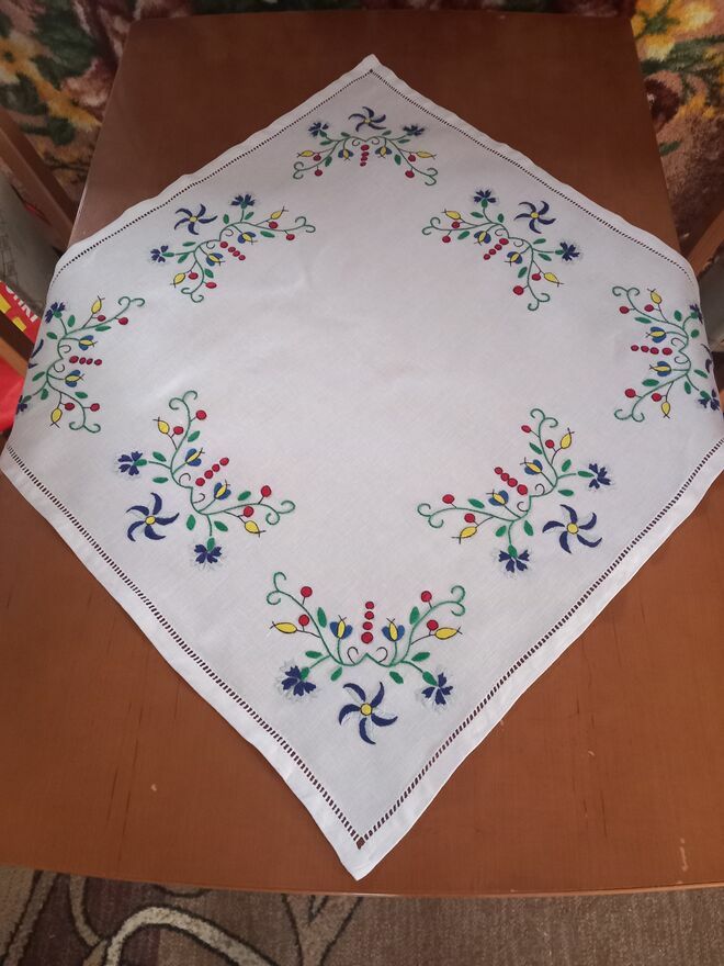 Serweta ręcznie haftowana na lnie o wymiarze 70x70 cm ,wykończona ręcznie robioną mereżką, haft kaszubski-wysyłka na koszt odbiorcyWaldemar Melzer
